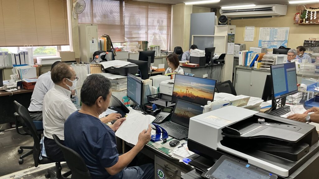 全員参加で行う社内清掃は、職場環境の美化とチームワーク強化の一環です。